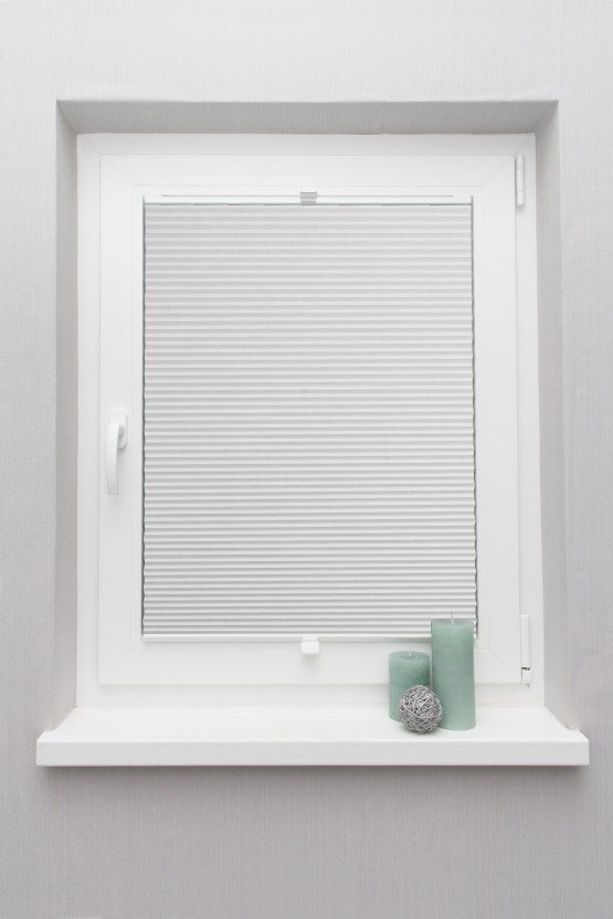 Rulou tip jaluzea plisată (plisse) din material 100% poliester. Dimensiunea cu sistem este egală cu dimensiunea pânzei.