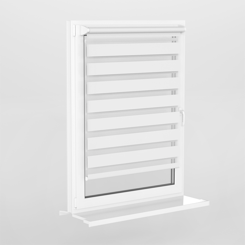 Jaluzea tip roletă zebră 1200 Semitransparentă, Day&Night, accesorii albe/ maro/ gri antracit, țesătură albă