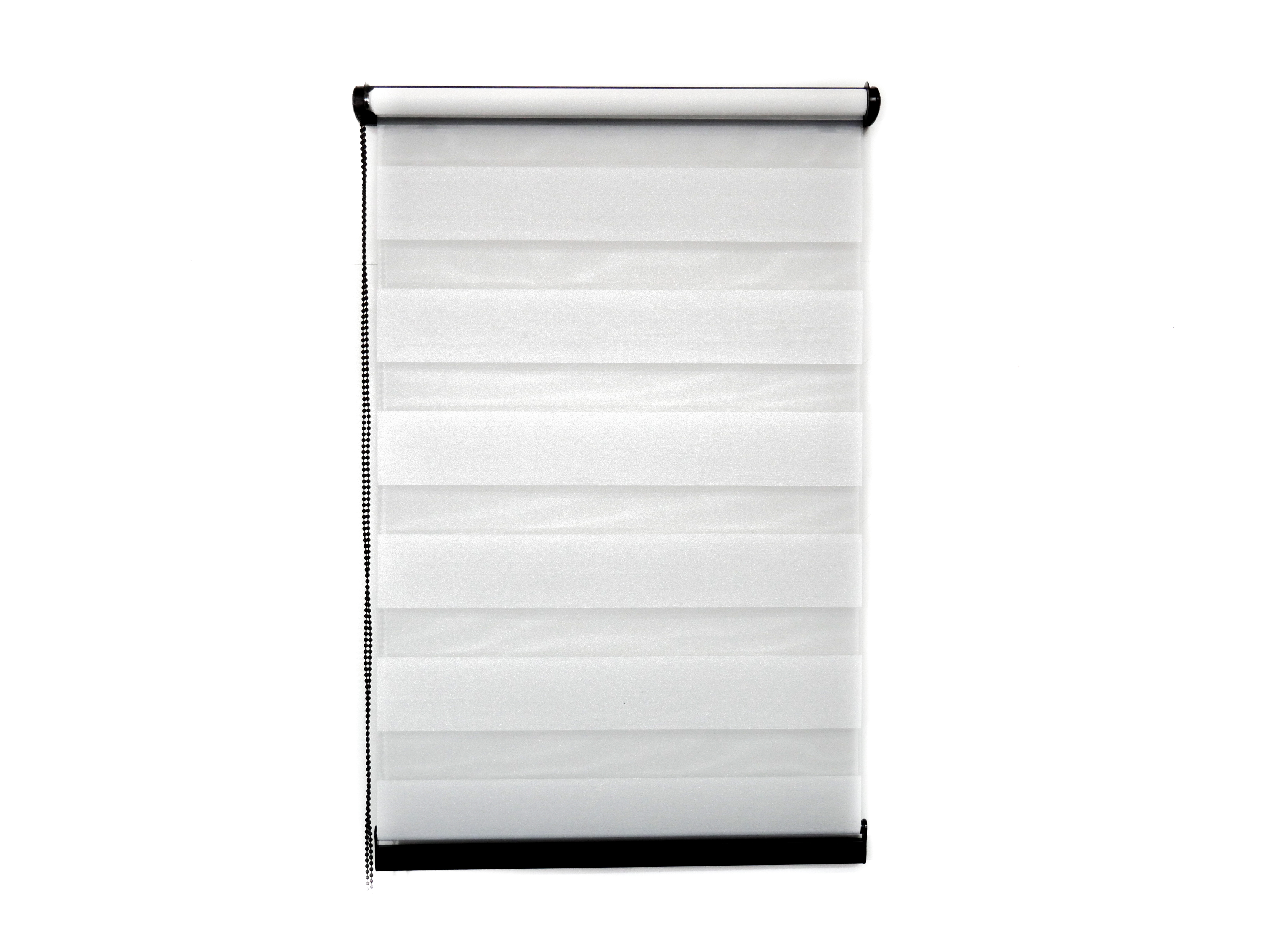 Rulou zebră/ Day&Night din material 100% poliester. Dimensiunea cu sistem este cu 4 cm mai mare decât dimensiunea pânzei.