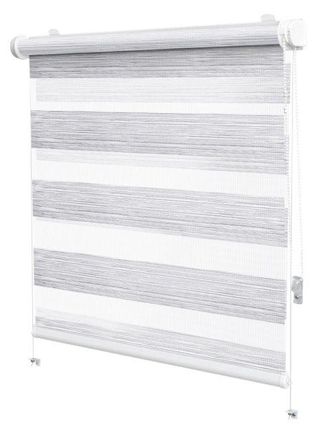 Rulou zebră/ Day&Night din material 100% poliester. Dimensiunea cu sistem este cu 4 cm mai mare decât dimensiunea pânzei.