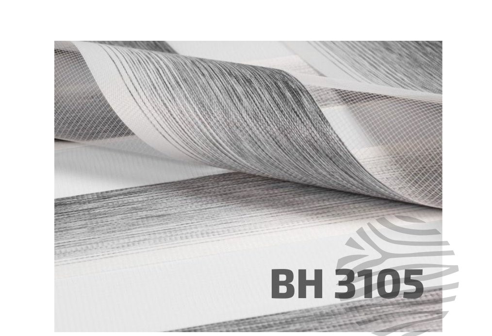 Jaluzea tip roletă zebră 3105 Semitransparentă, Day&Night, accesorii albe/ maro/ gri antracit, țesătură gri degrade